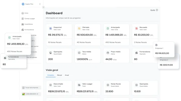 O SupplyPlus centraliza a operação de Risco Sacado da sua empresa em uma única plataforma, oferecendo ao seu time financeiro um ganho operacional no dia a dia e garantindo um maior controle contábil.