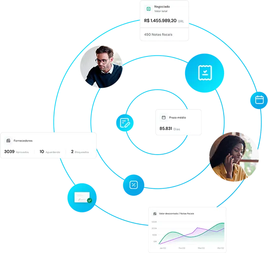 Essa estratégia possibilita que o seu programa de antecipações atinja uma escala muito maior, garantindo mais liquidez e melhores taxas para a sua cadeia de suprimentos.