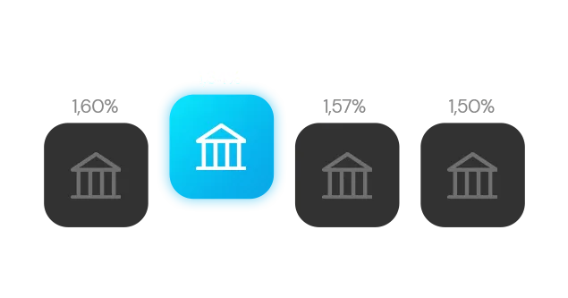 De forma automatizada, a plataforma avalia as melhores condições ofertadas no leilão e exibe as menores taxas para o fornecedor.